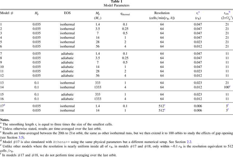 cResults are time-averaged between the 20th to 21st orbit, the same as other isothermal runs, but we then extend it to 100 orbits to study the effects of gap opening (see Section 3.5).