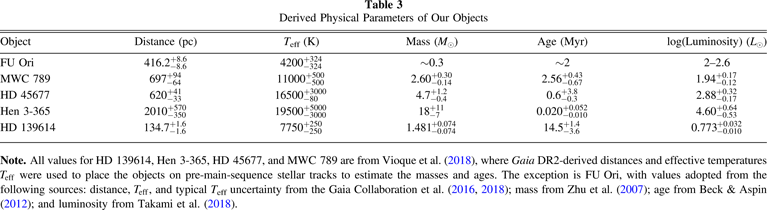 Note. All values for HD 139614, Hen 3-365, HD 45677, and MWC 789 are from Vioque et al. (2018), where Gaia DR2-derived distances and effective temperatures