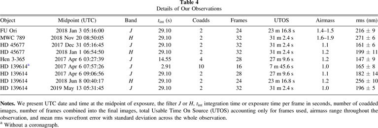 Table 4. Details of Our Observations