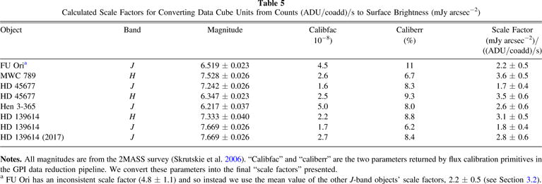 Note. The uncertainties are calculated based on the dominating factor, the percentage uncertainty in the flux scale value (roughly 13% for the H band and 20% for the J band—see Table 5).