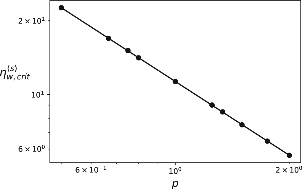 to plot the wind efficiency ηw,crit, which decreases with increasing p.
