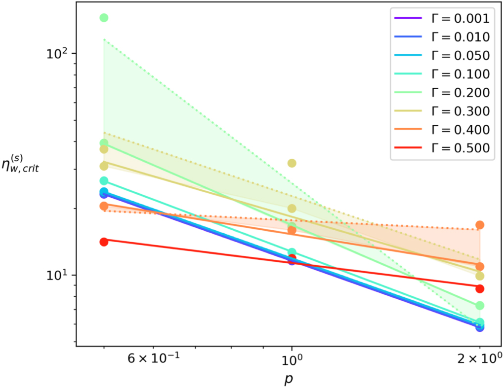 In Figure 6, we show the steady state critical ηw–p relation for various Γ. We find that the slope of this relation is nearly constant for Γ ≤ 0.2. For higher Γ, the slope changes and more than one