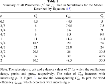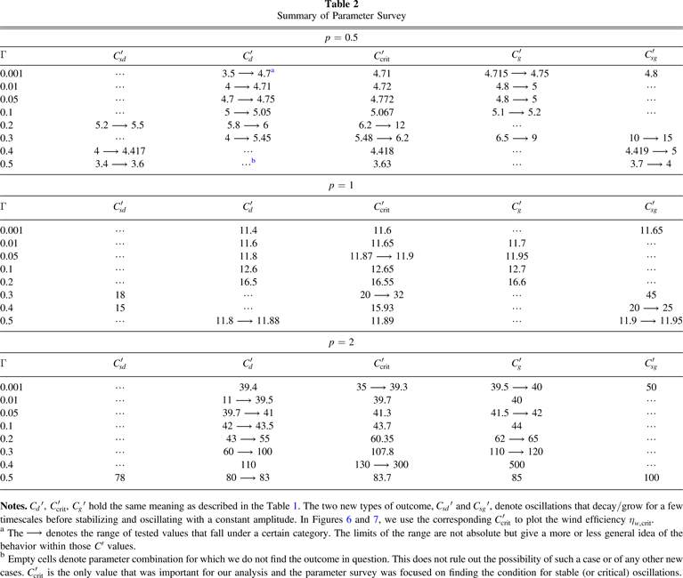 Note. The subscripts d, crit and g denote values of C' for which the oscillations decay, persist and grow, respectively. The value of
