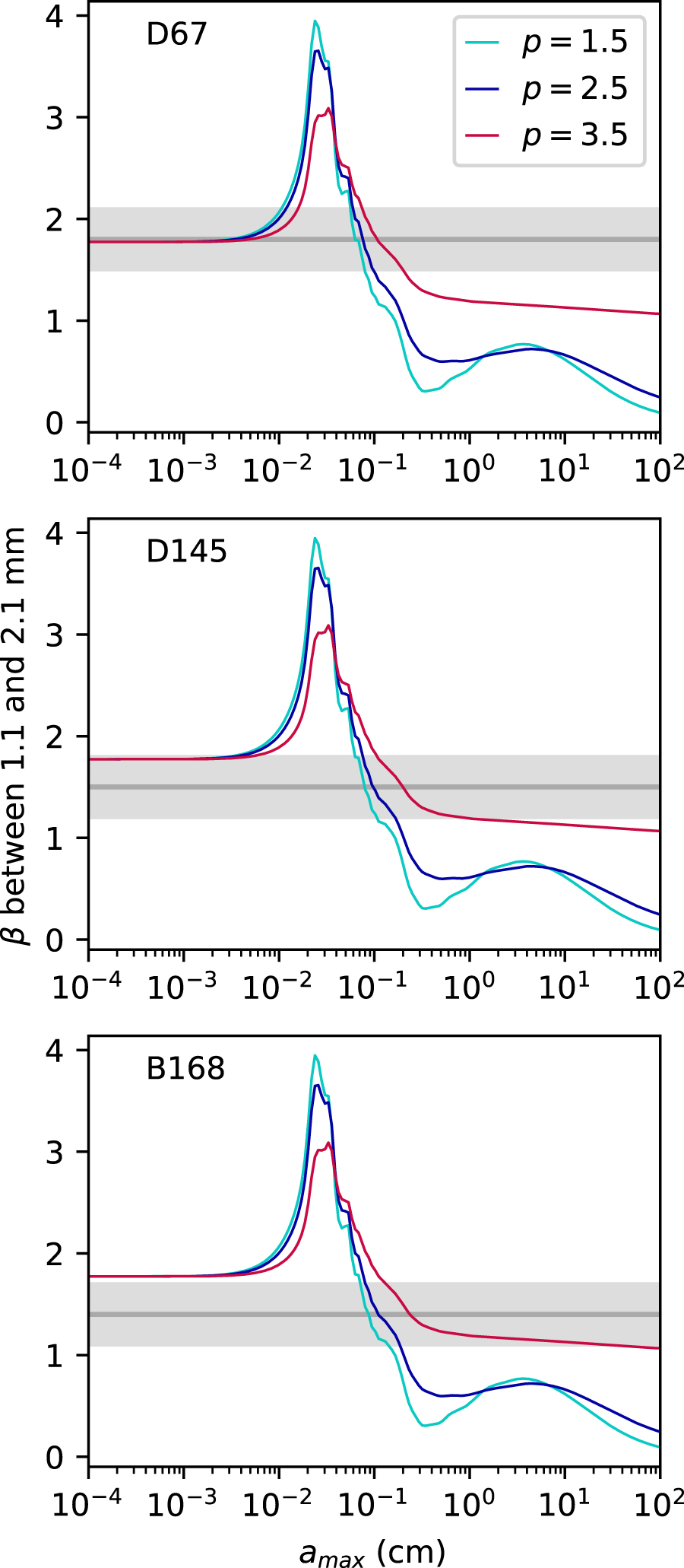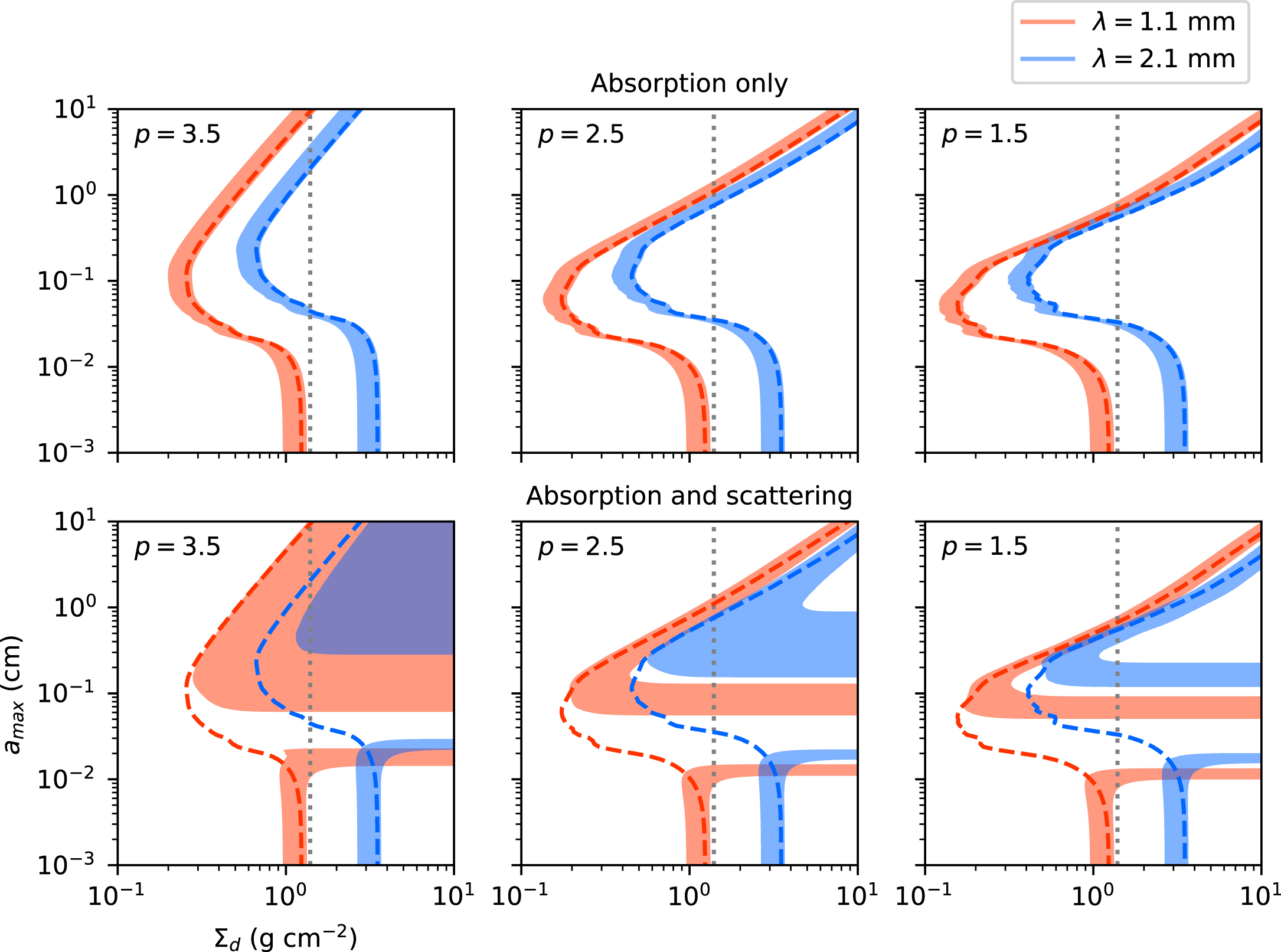 depend on the dust power-law distribution parameters p and amax. Thus, at a given frequency,