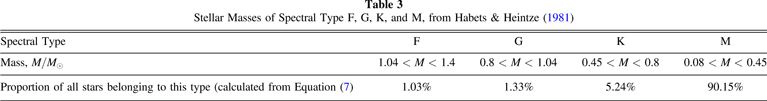 In the above considerations, we make the assumptions that if a planet could potentially support life, then it will inevitably develop a CETI but no earlier than τE ≈ 5 Gyr. To determine this, we use the star formation history of the Galaxy and the initial mass function (IMF) of stars. We discuss this calculation in Section 3.1 below. Clearly, our results will therefore be upper limits on the number of planets that develop intelligent life. However, in the absence of data on the other terms, this is a reasonable place to begin this calculation. It is important to realize that this is in many ways the most optimistic scenario when we later discuss the number of CETI in the Milky Way we could possibly detect.