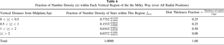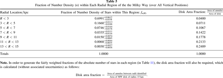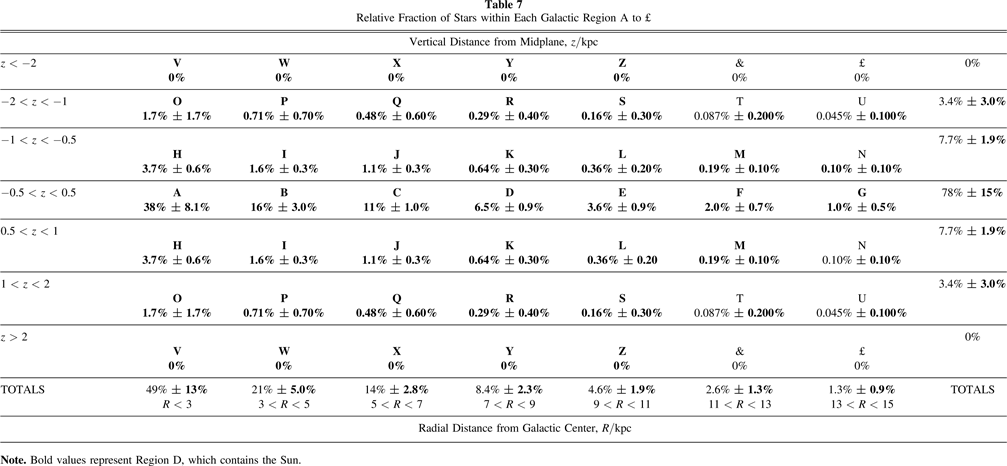 Table A1. Calculated Percentages of Stars with Metallicity Lower Than the Reference Value of 0.5 Z⊙, within Each Region of the Galaxy