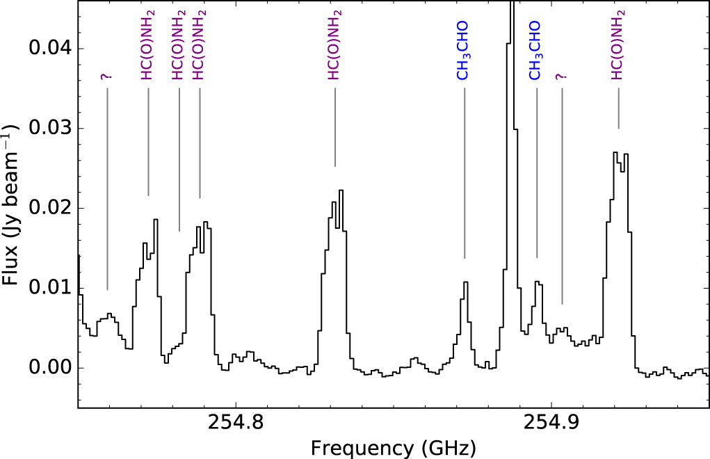 | HC(O)NH2 | CDMS | 45512 | ⋯ | 2(5) | ⋯ | ⋯ | 0(1) | 2(6) |