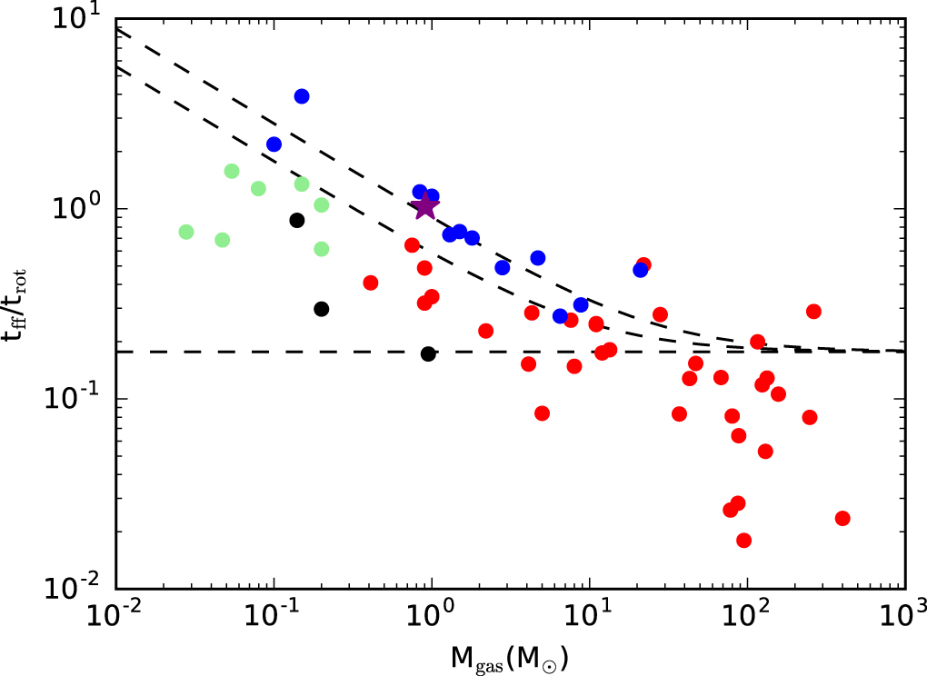 Given that there seem to be no unembedded disks around high-mass stars (Williams & Cieza 2011), low-mass embedded Class 0 and I sources are the more likely analogs of observed forming high-mass stars and are therefore the objects to which we should compare high-mass disk properties. In the case of low-mass Class 0 and I sources, the number of studied objects is also comparatively small, with many studies only observing one object (e.g., Jørgensen et al. 2009, 2016; Enoch et al. 2011; Tobin et al. 2012; Murillo et al. 2013, 2018; Aso et al. 2015; Tobin et al. 2015; Yen et al. 2015; Segura-Cox et al. 2016; Lee et al. 2017; Tobin et al. 2019). These disks are found to have a large range of masses (∼0.001–1 M⊙, e.g., Looney et al. 2003; Enoch et al. 2011; Harsono et al. 2014; Segura-Cox et al. 2016) and disk radii (<10 au to 100s of au, e.g., Choi et al. 2010; Murillo et al. 2013; Aso et al. 2015; Yen et al. 2015; Lee et al. 2016). Recent observations of disks around forming high-mass stars have also uncovered a large range of disk properties, including large (∼1000 au; Johnston et al. 2015; Ilee et al. 2016), small (Csengeri et al. 2018; Ginsburg et al. 2018; Girart et al. 2018; Maud et al. 2019) and nonexistent disks (Ginsburg et al. 2017; Silva et al. 2017; Beuther et al. 2019).