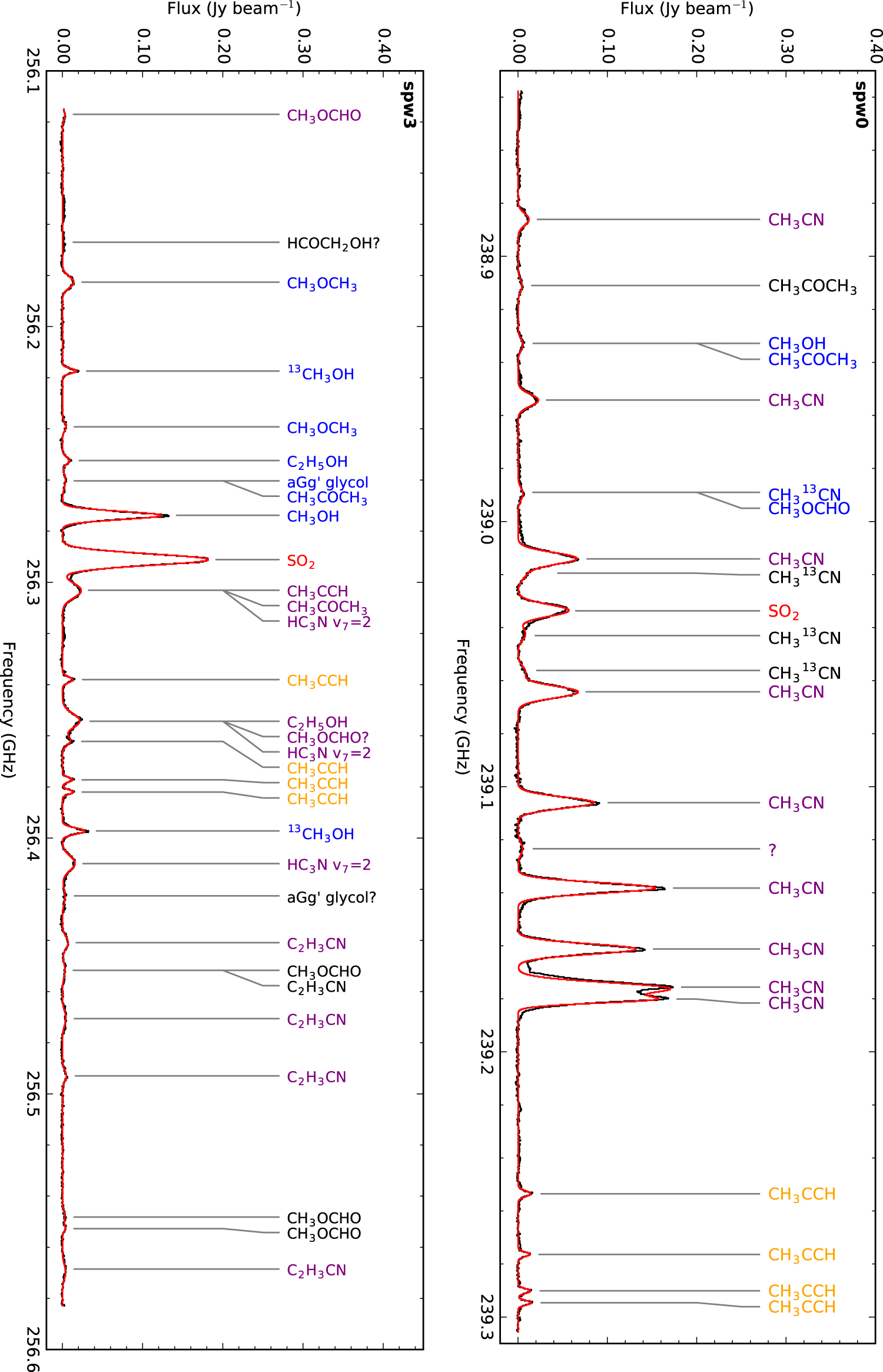 | CH3CHO | 13(2,11) → 12(2,10) E | 254.827152 | 94.09 | 10.14 | −53.3 | 4.3 | B |