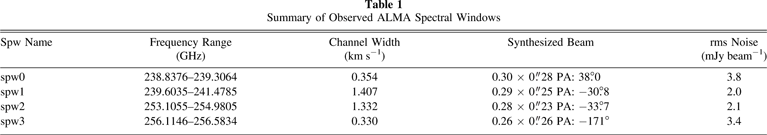 | Spw Name | Frequency Range | Channel Width | Synthesized Beam | rms Noise |