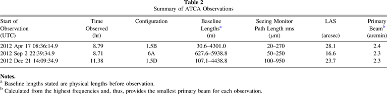 Table 2. Summary of ATCA Observations
