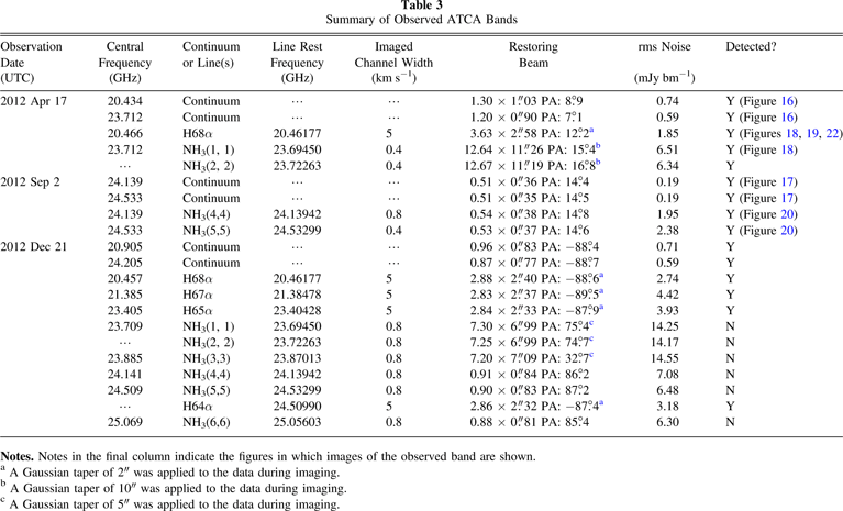 Table 3. Summary of Observed ATCA Bands