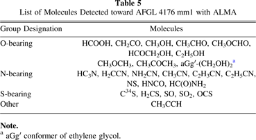 | CH3OCHO | JPL | 60003 | 7(2) | 2(1) | ⋯ | ⋯ | 4(2) | 13(5) |