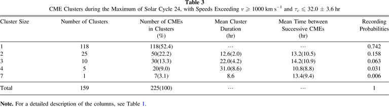 Table 3. CME Clusters during the Maximum of Solar Cycle 24, with Speeds Exceeding v ≥ 1000 km s−1 and τc ≤ 32.0 ± 3.6 hr