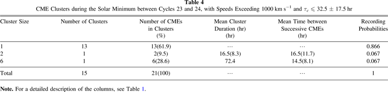 Standard image High-resolution imageTable 4. CME Clusters during the Solar Minimum between Cycles 23 and 24, with Speeds Exceeding 1000 km s−1 and τc ≤ 32.5 ± 17.5 hr