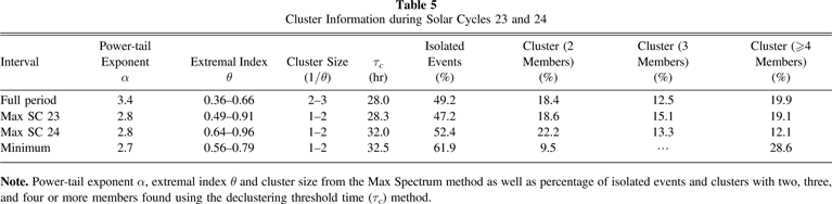 Table 5. Cluster Information during Solar Cycles 23 and 24