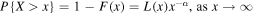 for some α > 0, where L(x) > 0 is a slowly varying function. The tail exponent α > 0 controls the rate of decay of F and hence characterizes its tail behavior. If we consider the case where the slowly varying function L is trivial, when