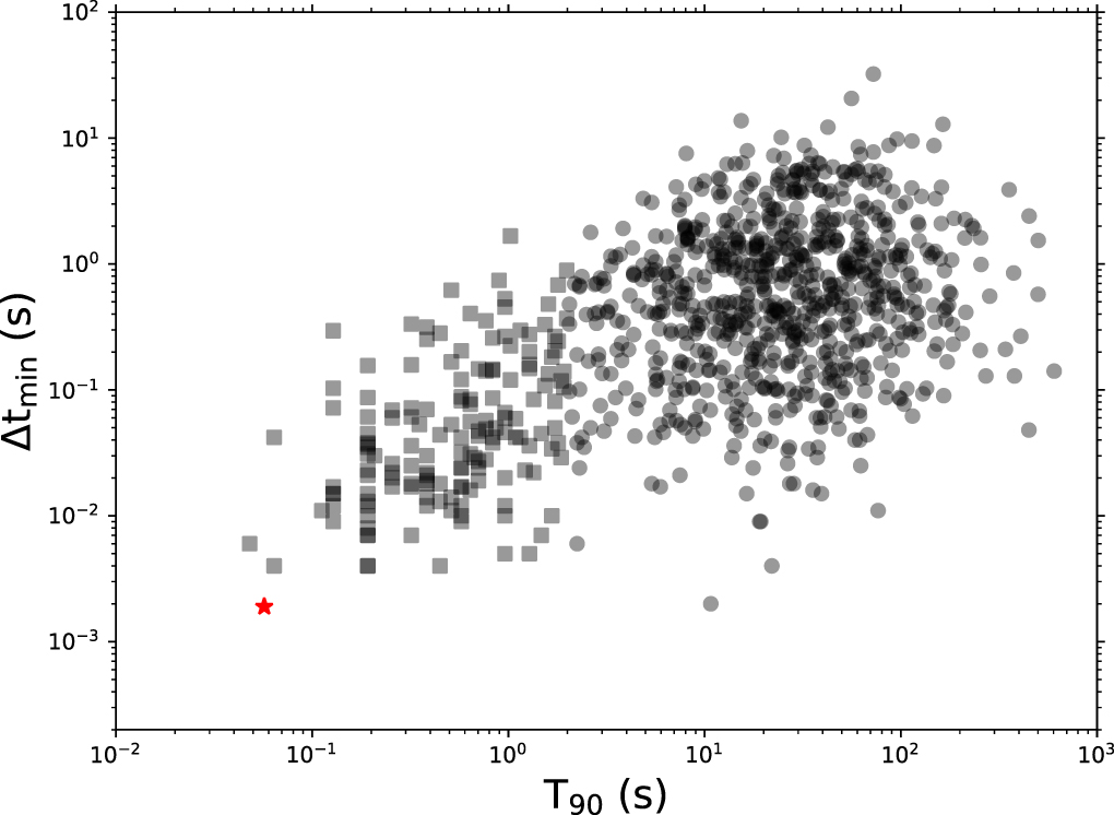 among all GRBs in Figure 4, where we plot a sample of short and long GRBs in the T90–