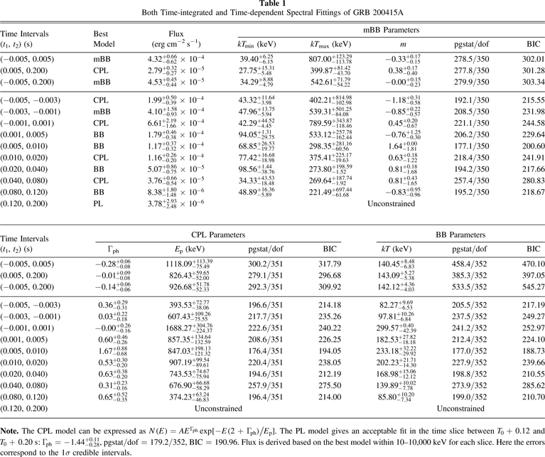 Table 1. Both Time-integrated and Time-dependent Spectral Fittings of GRB 200415A