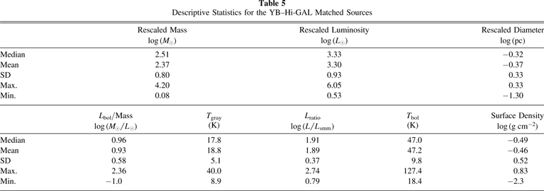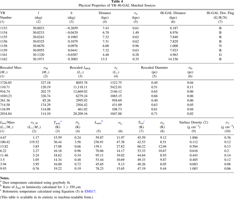 Table 4. Physical Properties of YB–Hi-GAL Matched Sources