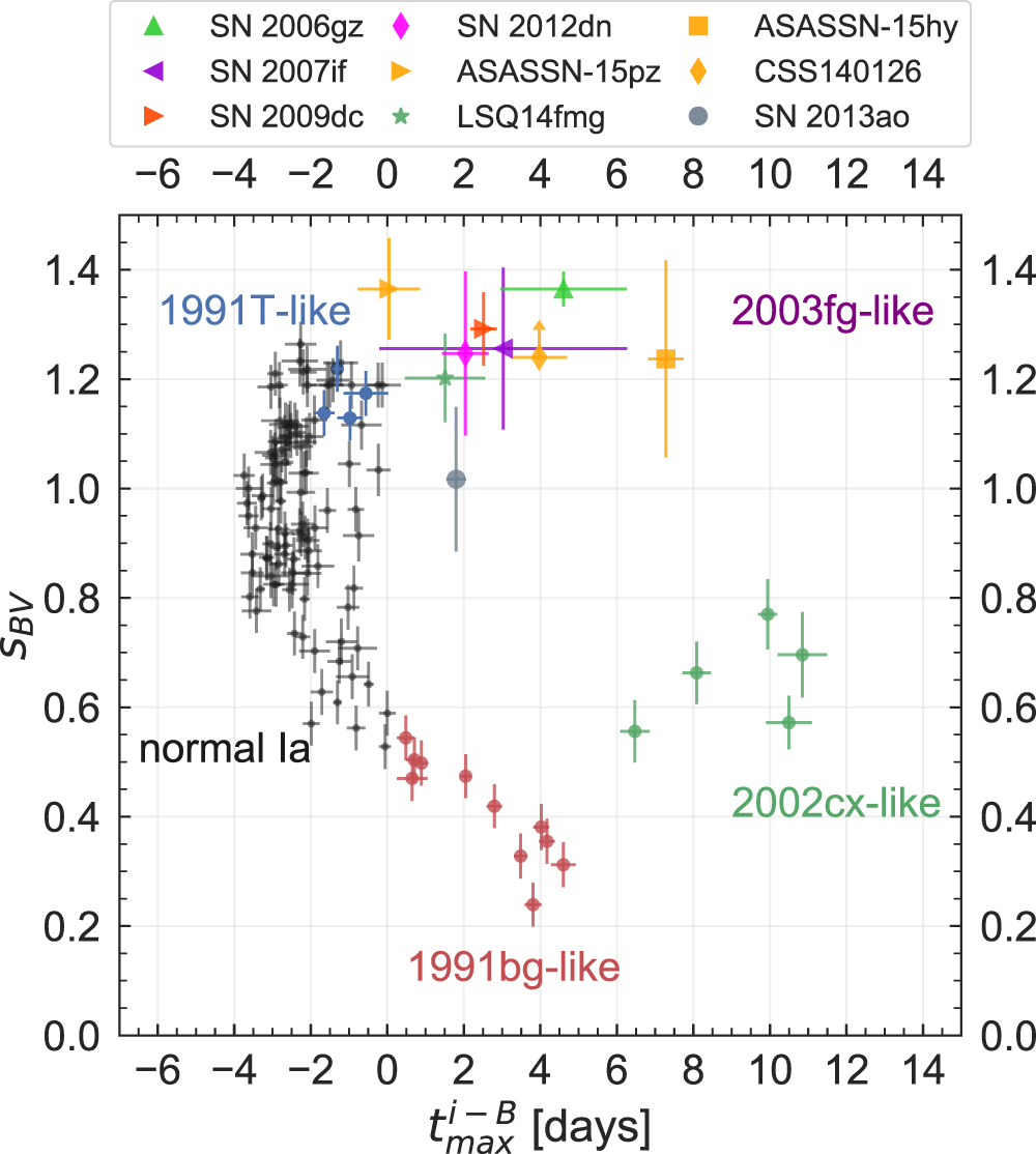 See Section 5.2 for the definition of sBV and Δm15(B).