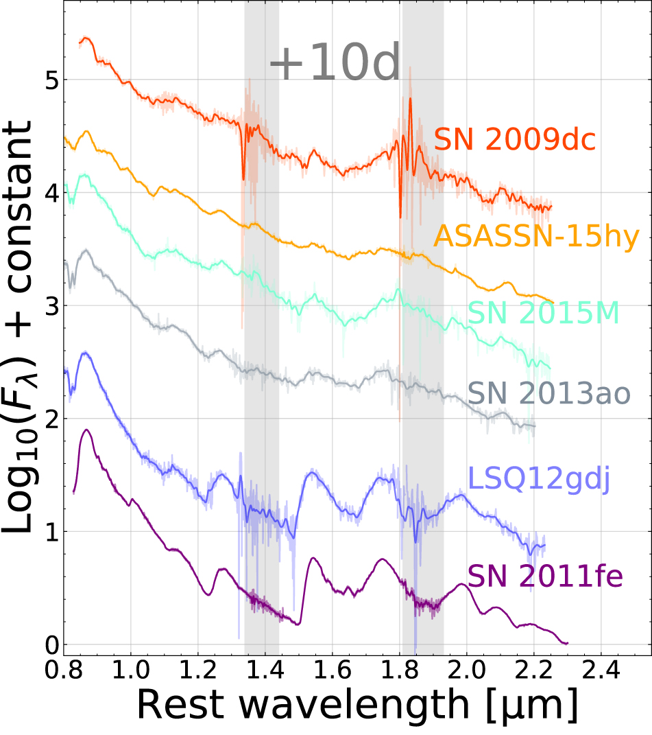 - 2.A lack of an H-band break at +10 days in the NIR spectra