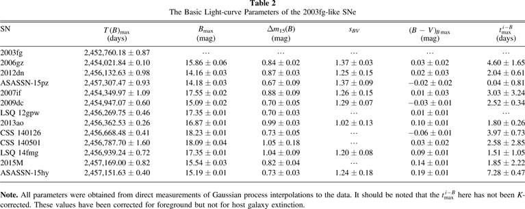 Table 2. The Basic Light-curve Parameters of the 2003fg-like SNe