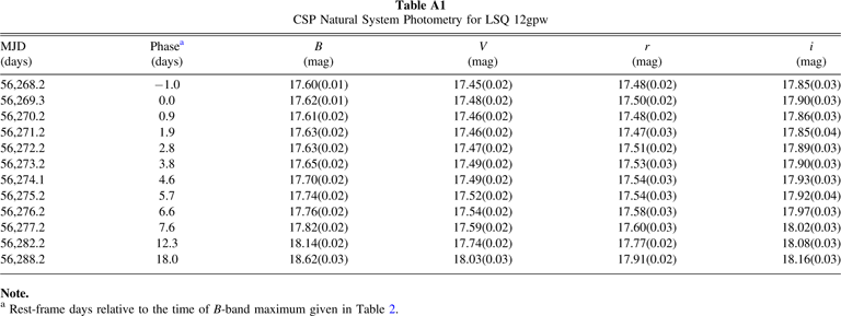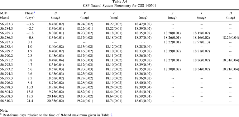 Table A5. CSP Natural System Photometry for SN 2015M