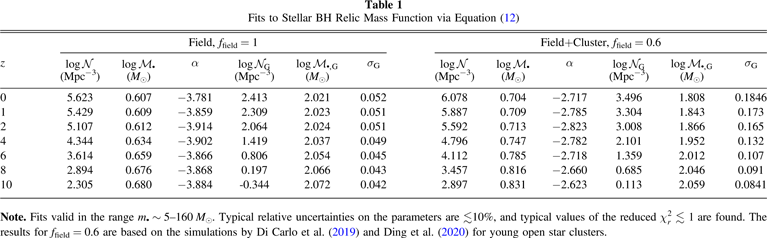 Table 1. Fits to Stellar BH Relic Mass Function via Equation (12)
