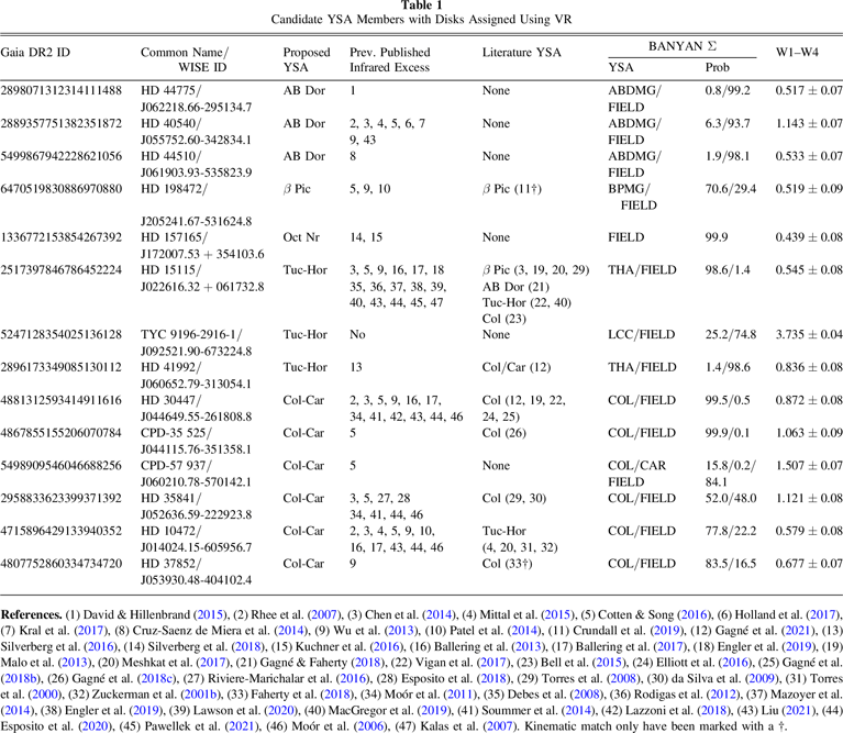 Standard image High-resolution imageTable 1. Candidate YSA Members with Disks Assigned Using VR
