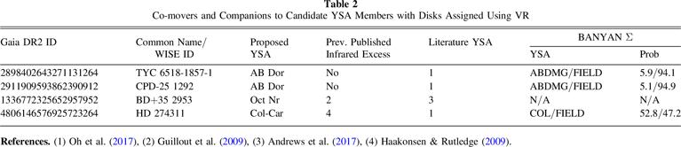 Standard image High-resolution imageTable 2. Co-movers and Companions to Candidate YSA Members with Disks Assigned Using VR