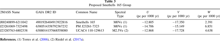 We looked to see if perhaps these three stars might be better matched to another nearby YSA like β Pictoris, Columba–Carina, or 32 Or. However, our visual inspection in VR suggests that they do not belong to any other YSA. They seem more likely to represent another new unknown group, perhaps with an age similar to Tuc-Hor, based on the CMD in Figure 12. We are calling this group the "Smethells 165 group". Notably, these three stars are all M dwarfs (Torres et al. 2006; Riedel et al. 2017a).