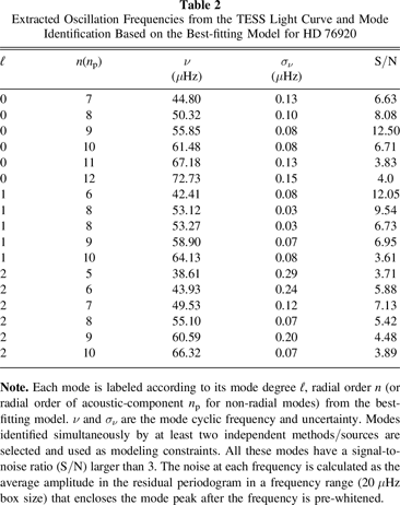 Standard image High-resolution imageTable 2. Extracted Oscillation Frequencies from the TESS Light Curve and Mode Identification Based on the Best-fitting Model for HD 76920