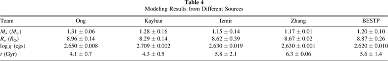 | M⋆ (M⊙) | 1.31 ± 0.06 | 1.28 ± 0.16 | 1.15 ± 0.14 | 1.17 ± 0.01 | 1.20 ± 0.10 |