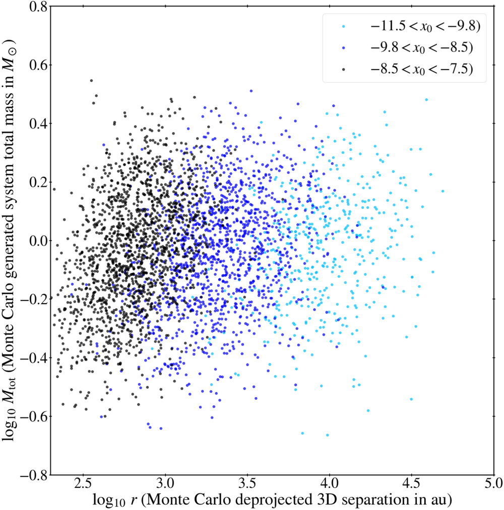 Thus, we will not use any of the above reported values as a fixed input for our modeling. Rather, we will treat the overall multiplicity fraction as a free parameter to be determined by the observed PMs of the binaries relatively less widely separated so that Newtonian gravity can be assumed for them. The self-calibrated high-order multiplicity fraction will then be compared with the above observational values.