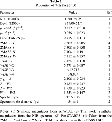 Notes. (1) Synthetic magnitudes from AllWISE. (2) This work. Synthetic magnitudes from the NIR spectrum. (3) Pan-STARRS. (4) Taken from the 2MASS Point Source "Reject" Table; no detection in the 2MASS PSC.