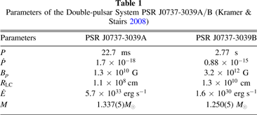 Table 1. Parameters of the Double-pulsar System PSR J0737-3039A/B (Kramer & Stairs 2008)