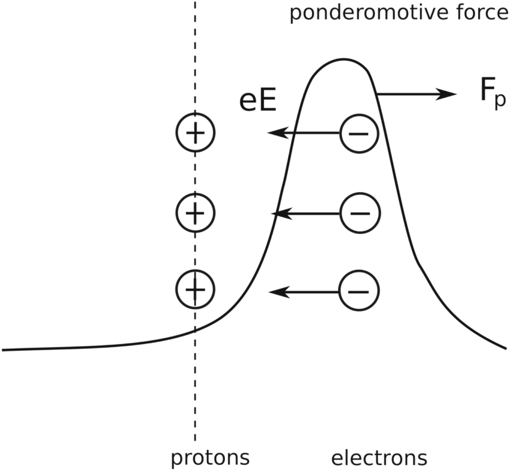 is the vector potential. The result of ponderomotive force is that electrons will be expelled from the regions where the electric field is higher, which can be viewed as the radiation pressure. In the relativistic regime, the ponderomotive force is (Bauer et al. 1995; Mulser & Bauer 2010)