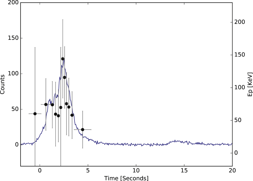 Figure 3. BAT light curve (blue line) and its Ep black circle evolution of GRB 110715A. The isotropic γ-ray energy is