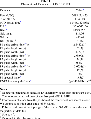 Table 1. Observational Parameters of FRB 181123