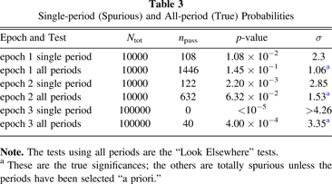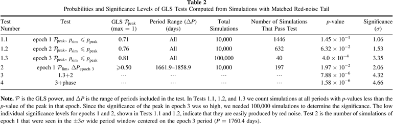 Table 2. Probabilities and Significance Levels of GLS Tests Computed from Simulations with Matched Red-noise Tail