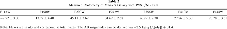 Table 2. Measured Photometry of Maisie's Galaxy with JWST/NIRCam
