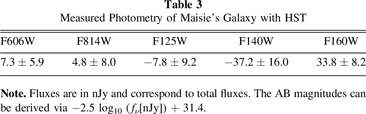 Table 3. Measured Photometry of Maisie's Galaxy with HST