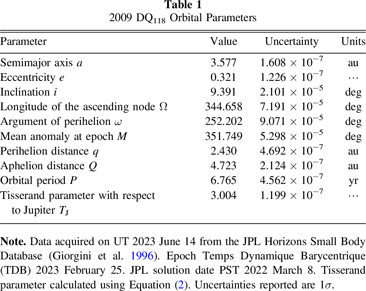 Table 1. 2009 DQ118 Orbital Parameters