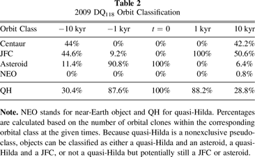 Table 2. 2009 DQ118 Orbit Classification