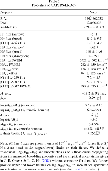 Table 1. Properties of CAPERS-LRD-z9