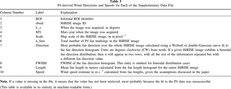 Table 3. P4-derived Wind Directions and Speeds for Each of the Supplementary Data File
