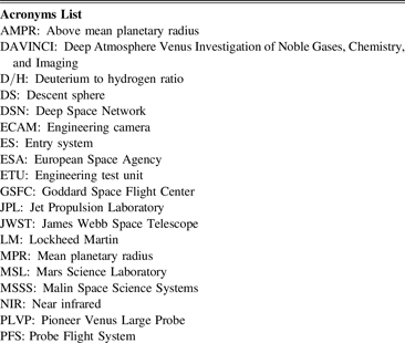 - 3.Venus Atmospheric Structure Investigation (VASI): design heritage from previous atmospheric entry probes for measuring pressure, temperature, and acceleration.