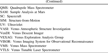 Standard image High-resolution imagePrevious Venus exploration has led to significant advancements in our understanding of the bulk atmospheric composition of the planet, its geological history, and its geodynamics (Grinspoon & Bullock 2007; Taylor & Grinspoon 2009; Kane et al. 2019; Way & Del Genio 2019; Lammer et al. 2020). Yet Venus remains the least understood of the inner planets. With the recent selection of multiple Venus missions, this may soon change. The DAVINCI mission will complement contemporary Venus missions, as shown in Figure 1, which feature next-generation radar and nightside near-infrared (NIR) emission spectrometers for mapping the surface at scales from tens of meters (synthetic aperture radar; SAR) to ∼100 km (NIR spectroscopy). These payloads will fly on missions in the late 2020s (NASA's VERITAS) and mid-2030s (ESA's EnVision) to determine compositional patterns at regional to global scale for advancing models of Venus's crustal and thermal evolution (Ghail et al. 2018; Ghail 2021). In turn, the DAVINCI mission will provide in situ context for these global remote-sensing missions by capturing definitive measurements of atmospheric composition, key atmospheric isotope ratios, multiband descent imaging, and Venus flyby imaging at ultraviolet (UV) and NIR wavelengths to establish new knowledge about the vertically resolved atmosphere and currently poorly understood regions of the surface.