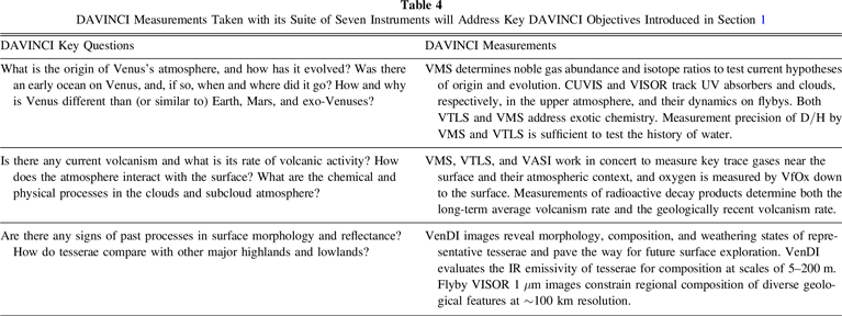 Table 4. DAVINCI Measurements Taken with its Suite of Seven Instruments will Address Key DAVINCI Objectives Introduced in Section 1